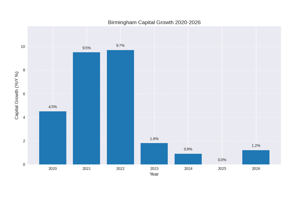 Birmingham remains one of the UK’s most compelling investment markets in 2026, supported by strong population growth, major infrastructure upgrades, and a resilient, diverse economy. Citywide gross rental yields average around 5.5%, with high‑demand pockets such as Selly Oak reaching up to 8%. Average rents of £1,080 and low vacancy rates underline the depth of tenant demand, while the expanding West Midlands Metro and the city’s central location continue to attract employers and residents alike.